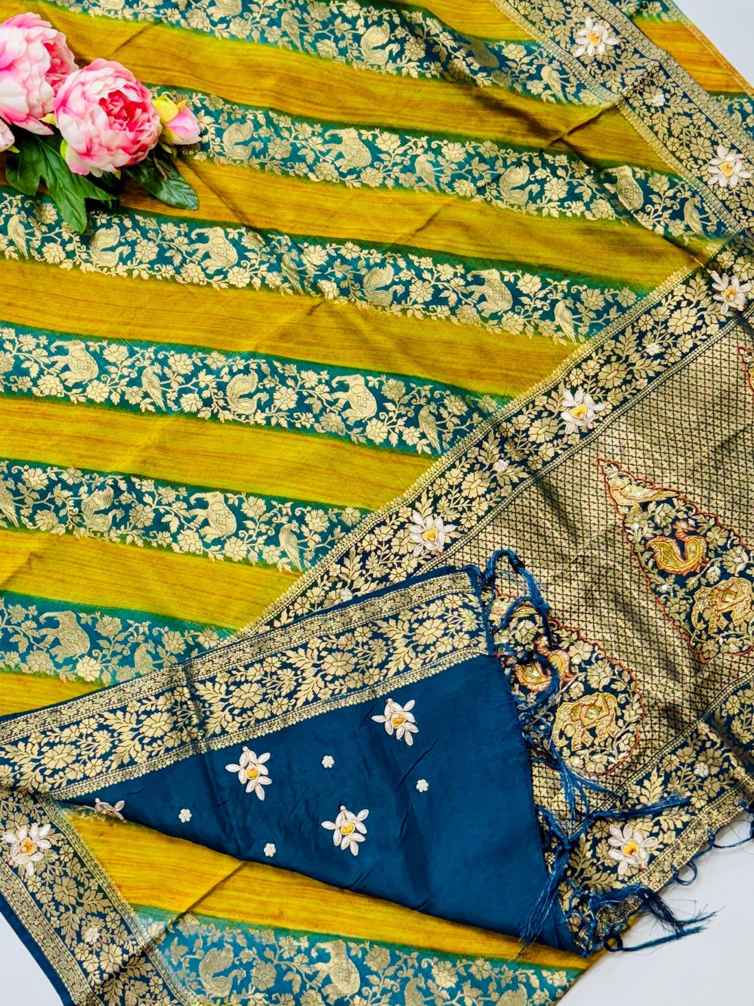Benarasi weaving with lehariya style and maggam saree
