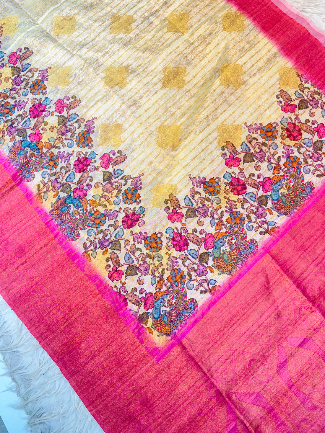 Pure Russian Tussar sarees showcase the exceptional texture and natural luster of Russian tussar silk,...