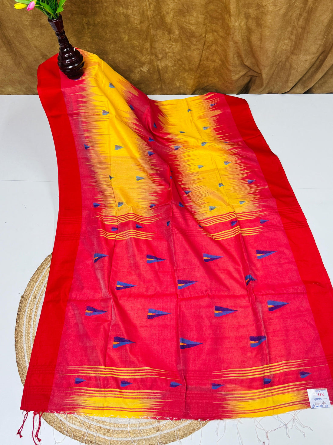 Experience the elegance of tradition with this Pure Handloom Malcotton Saree. Crafted from breathable malcotton...