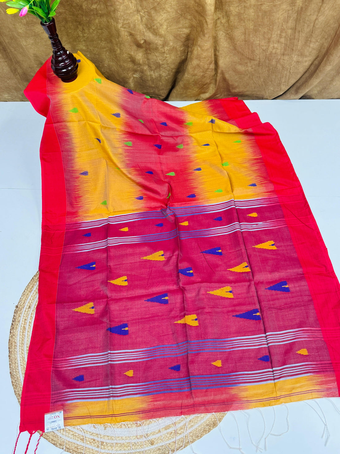 Experience the timeless charm of the Handloom Pochampalli Cotton Saree, crafted with precision using traditional...