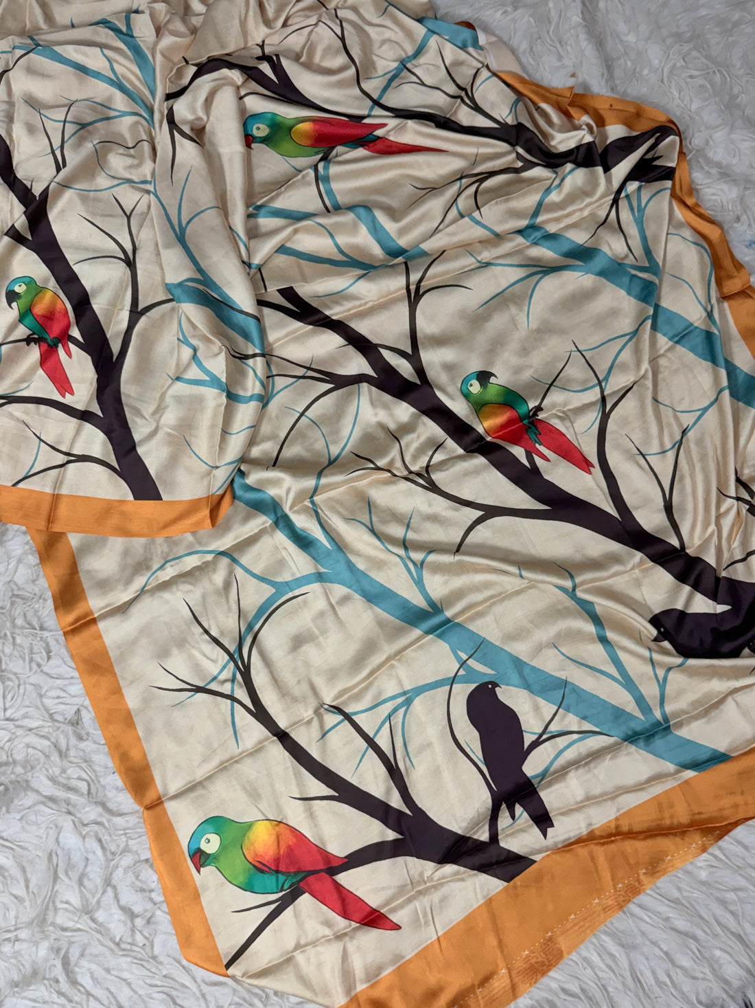 Japan Satin Sarees are a contemporary fusion of traditional Indian elegance and modern Japanese textile...
