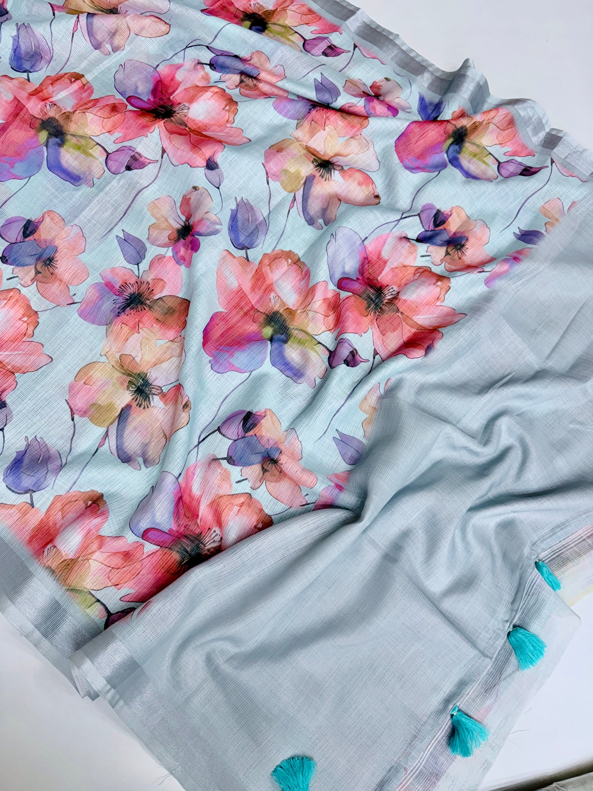 Crafted from a premium blend of cotton and linen, this saree offers exceptional breathability and comfort, ideal for warm climates. Its natural fibers ensure durability and a soft texture that drapes elegantly, making it perfect for both casual and formal occasions. The cotton-linen combination provides a refined matte finish, enhancing the saree’s sophisticated appeal while maintaining ease of maintenance. This saree is a versatile addition to any wardrobe, balancing traditional charm with contemporary practicality.
