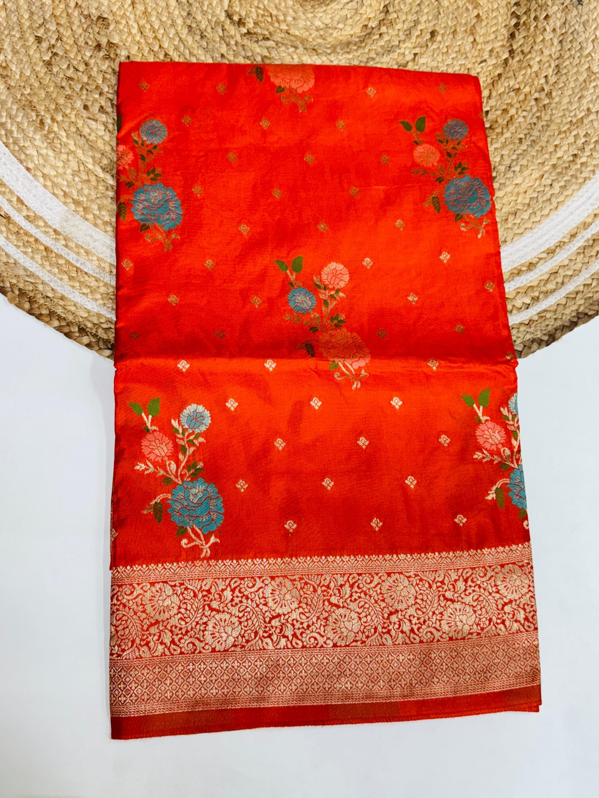 Discover the timeless elegance of our Georgette Tusser Banarasi Weaving Sarees, where traditional craftsmanship meets contemporary sophistication. Each saree features the signature intricate brocade work characteristic of Banarasi weaving, combined with the lightweight drape of georgette fabric. The tusser silk accents add a subtle sheen and luxurious texture, making these sarees ideal for weddings, festivals, and special occasions. Expertly handwoven by skilled artisans, every piece showcases authentic patterns and superior quality. Perfect for those who appreciate heritage textiles and refined aesthetics.