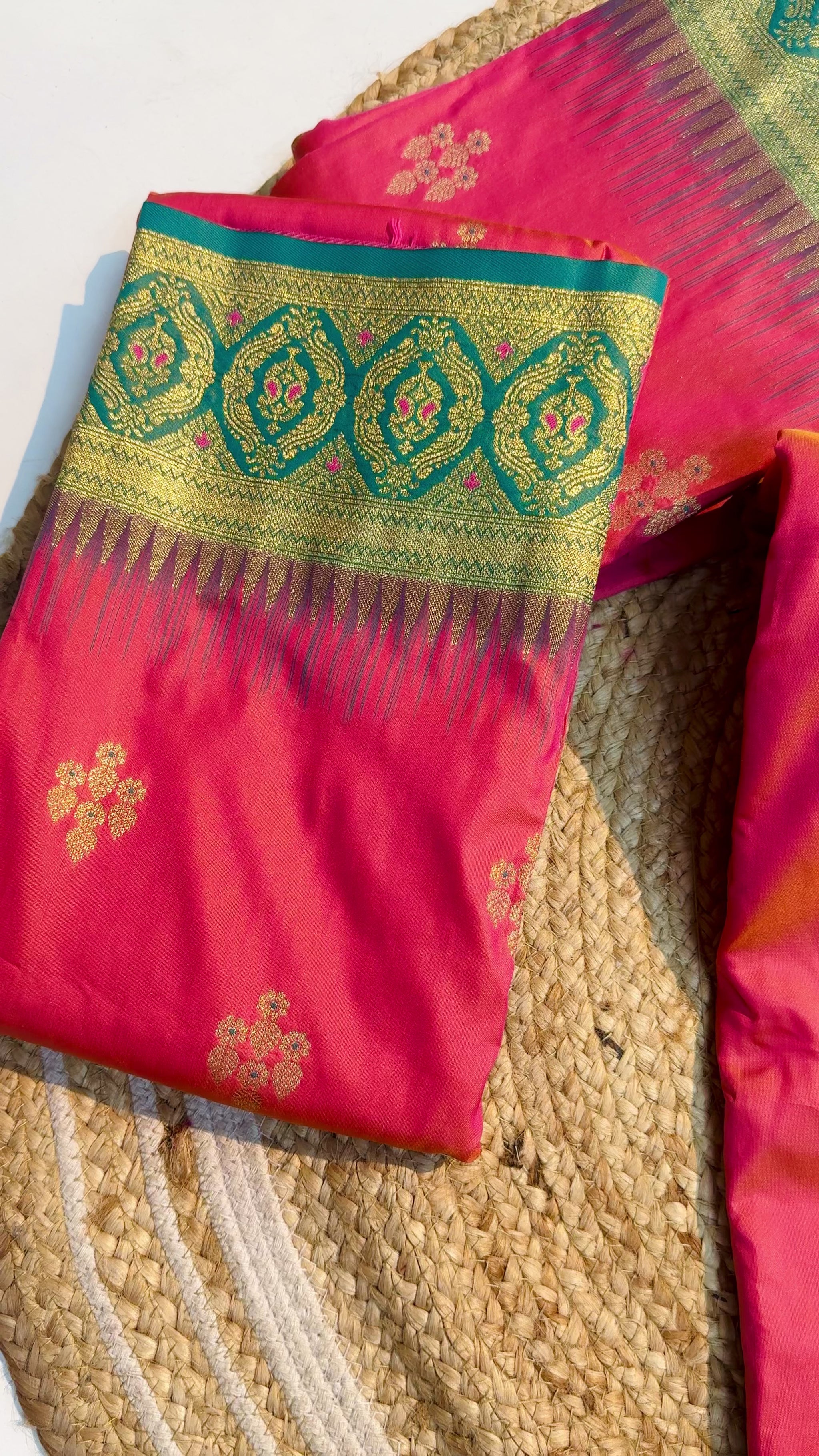The Malbari Pattu Saree is a timeless traditional garment, crafted with rich silk that reflects the heritage of Malabar weaving. Known for its fine texture and vibrant, durable colors, this saree offers an elegant drape suited for ceremonial and festive occasions. Its intricate craftsmanship ensures a luxurious feel, highlighting the wearer’s grace and sophistication with every use. Ideal for those who appreciate authentic South Indian artistry and quality in their wardrobe.