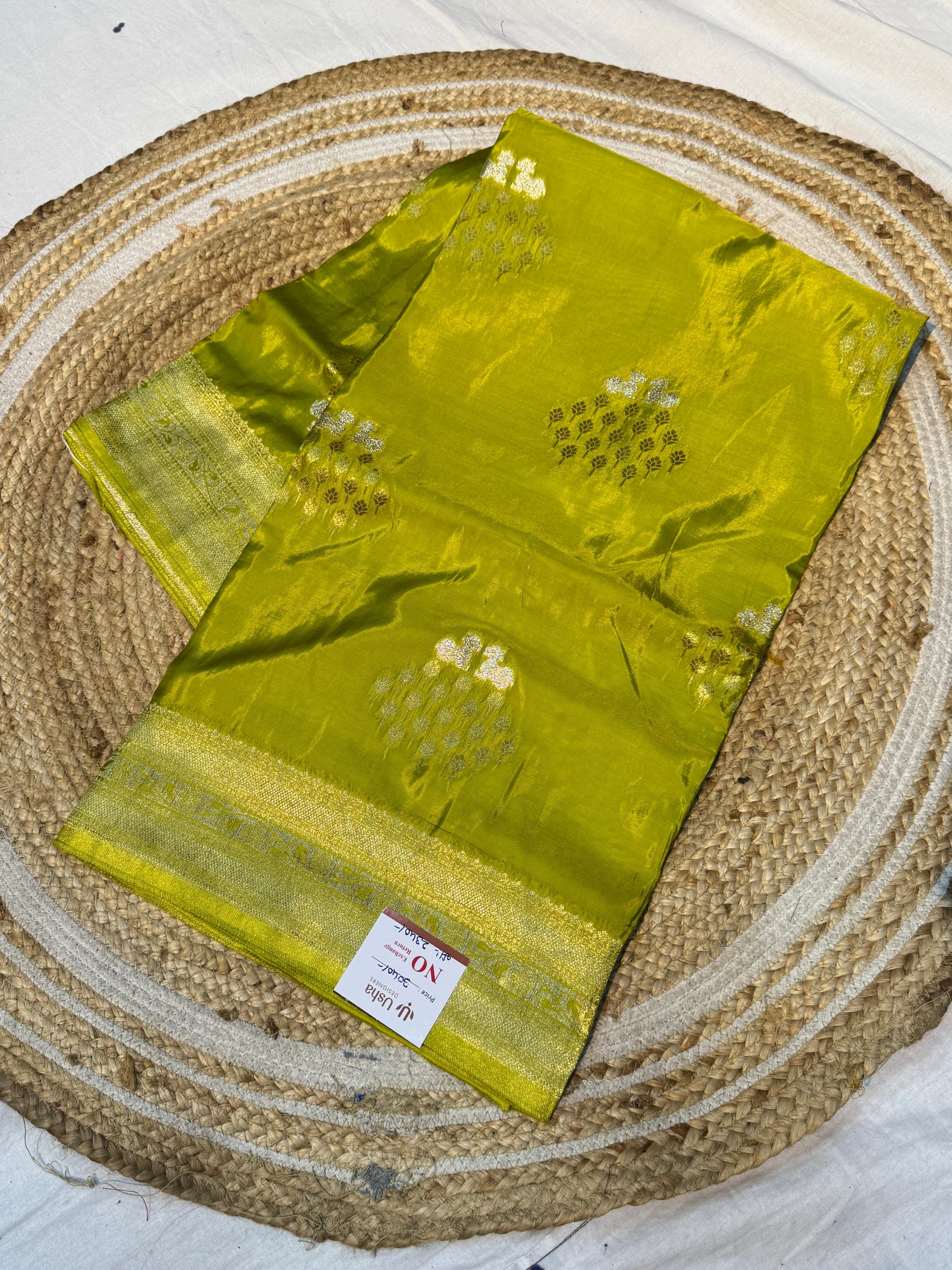 Pure Green Mango Sarees showcase a vibrant green hue inspired by the freshness of mangoes, crafted with meticulous attention to detail. These sarees combine traditional motifs with expert weaving techniques, resulting in a fabric that is both elegant and durable. Ideal for festive and formal occasions, their rich color and fine texture enhance your silhouette while offering comfort and timeless style.
