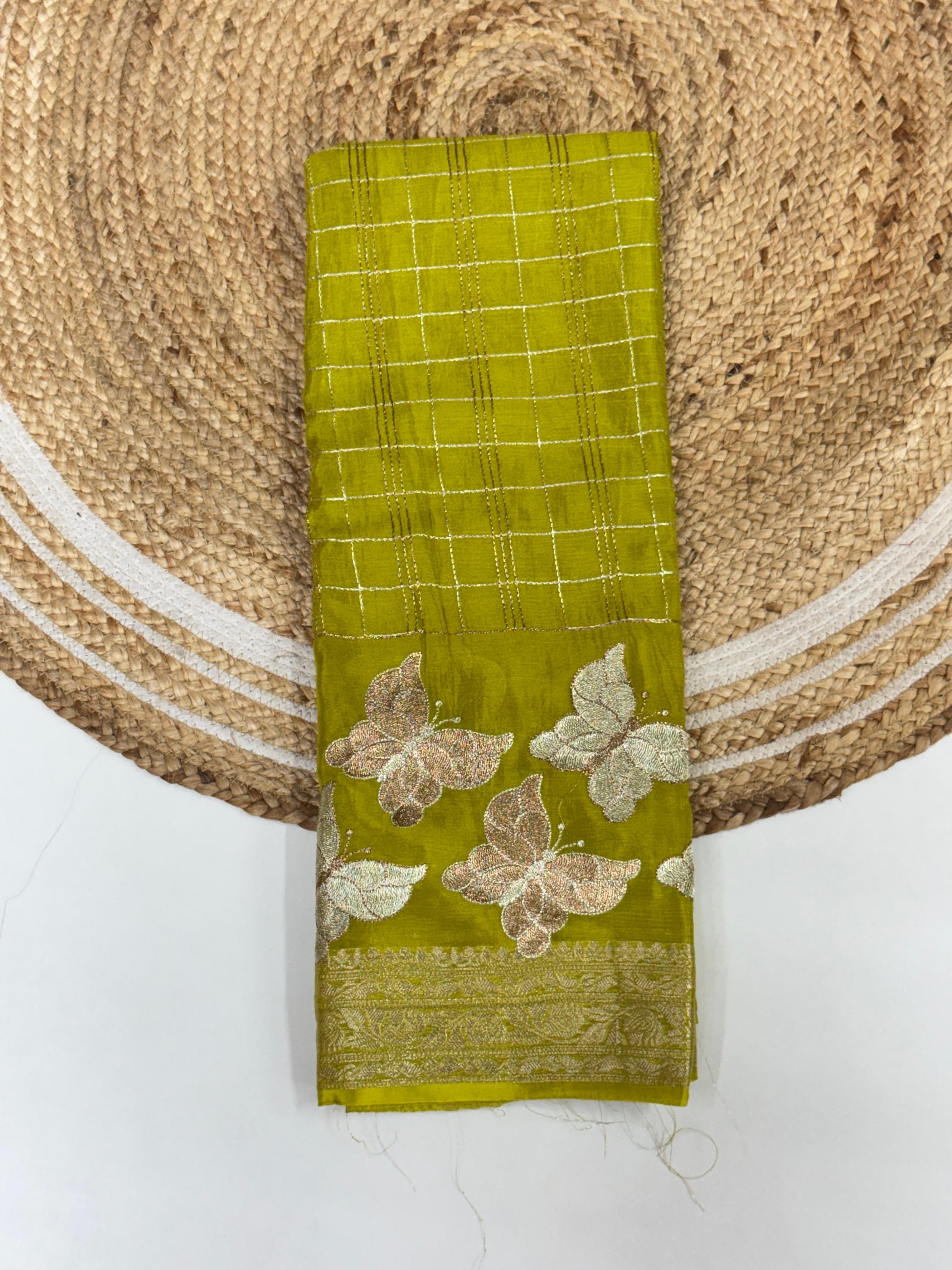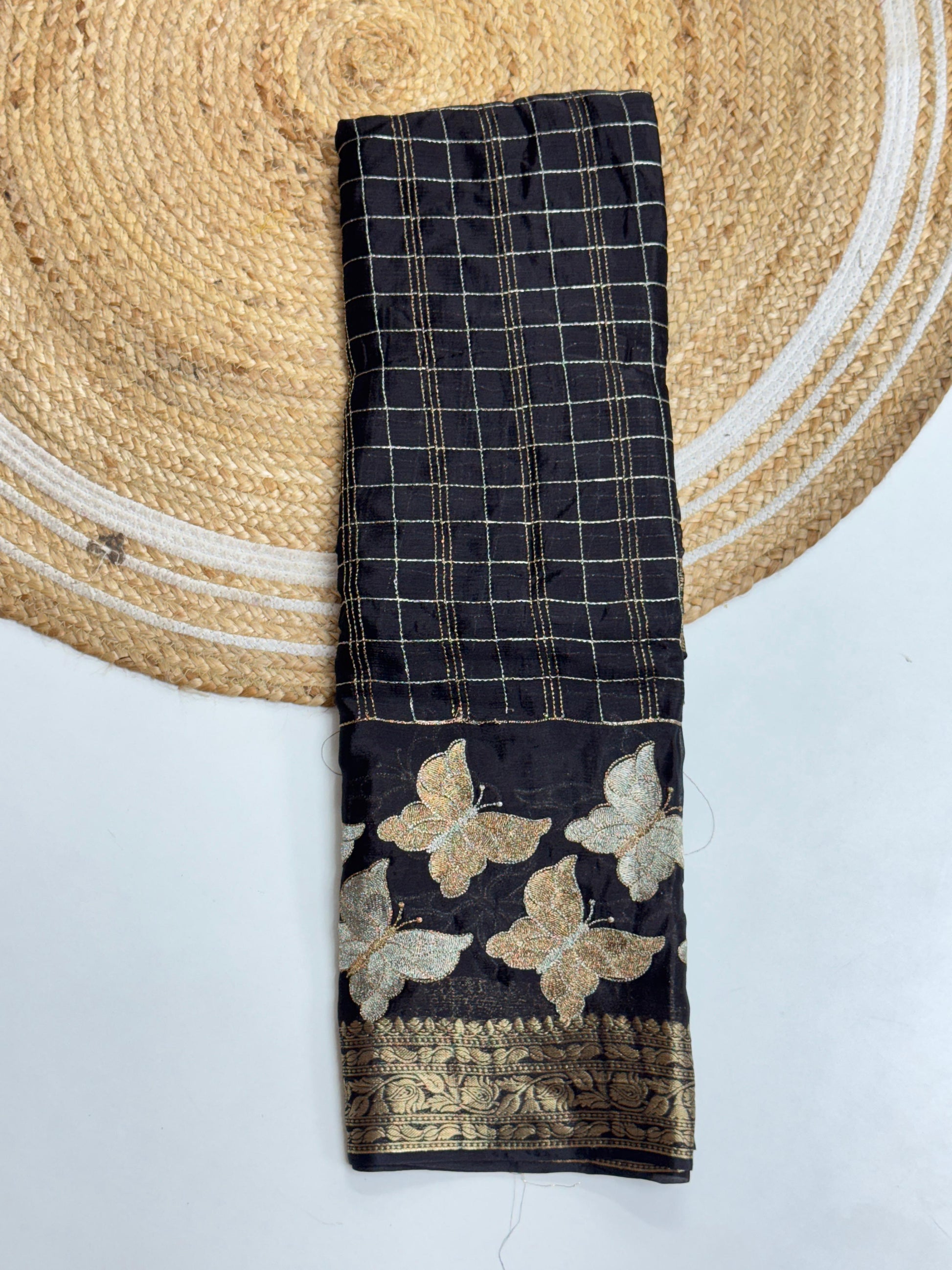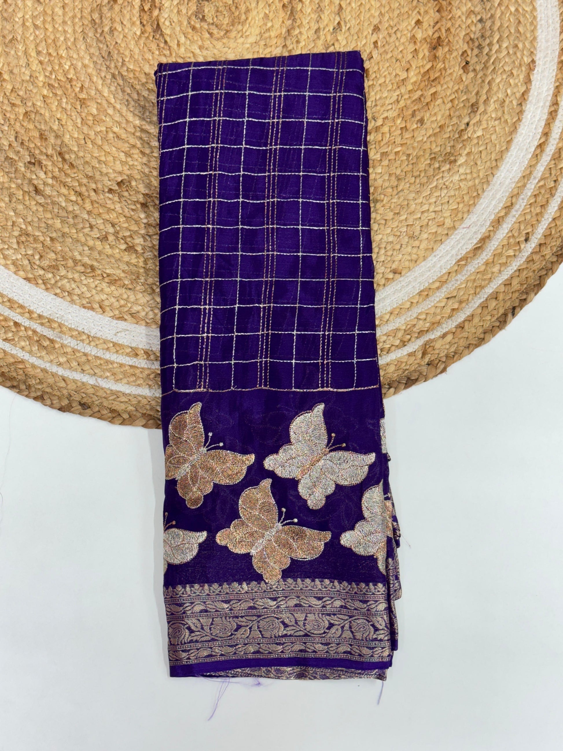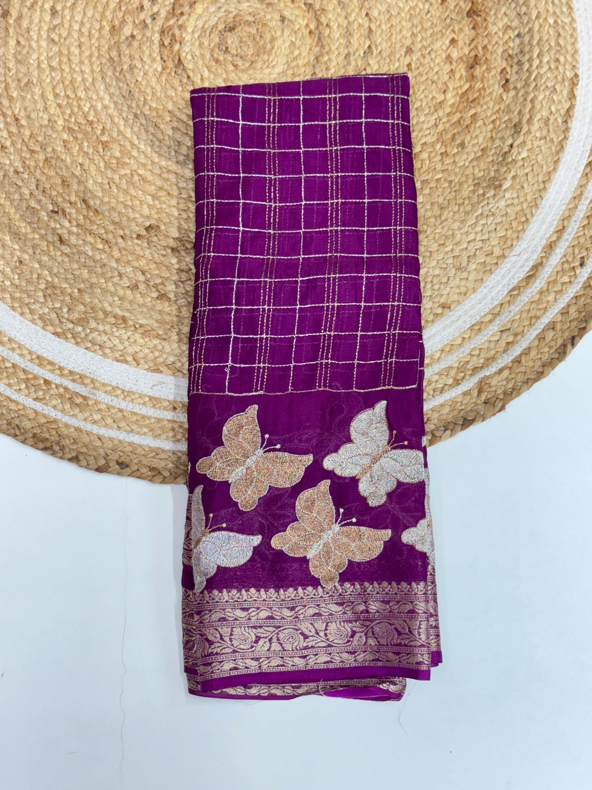 Experience elegance with the Chinon Chiffon Saree, crafted from lightweight, semi-transparent chiffon fabric. Its smooth texture and graceful drape provide superior comfort and a flattering silhouette, ideal for formal occasions and celebrations. This saree's delicate sheen adds subtle sophistication, making it a refined choice for those who appreciate expert craftsmanship and timeless style.